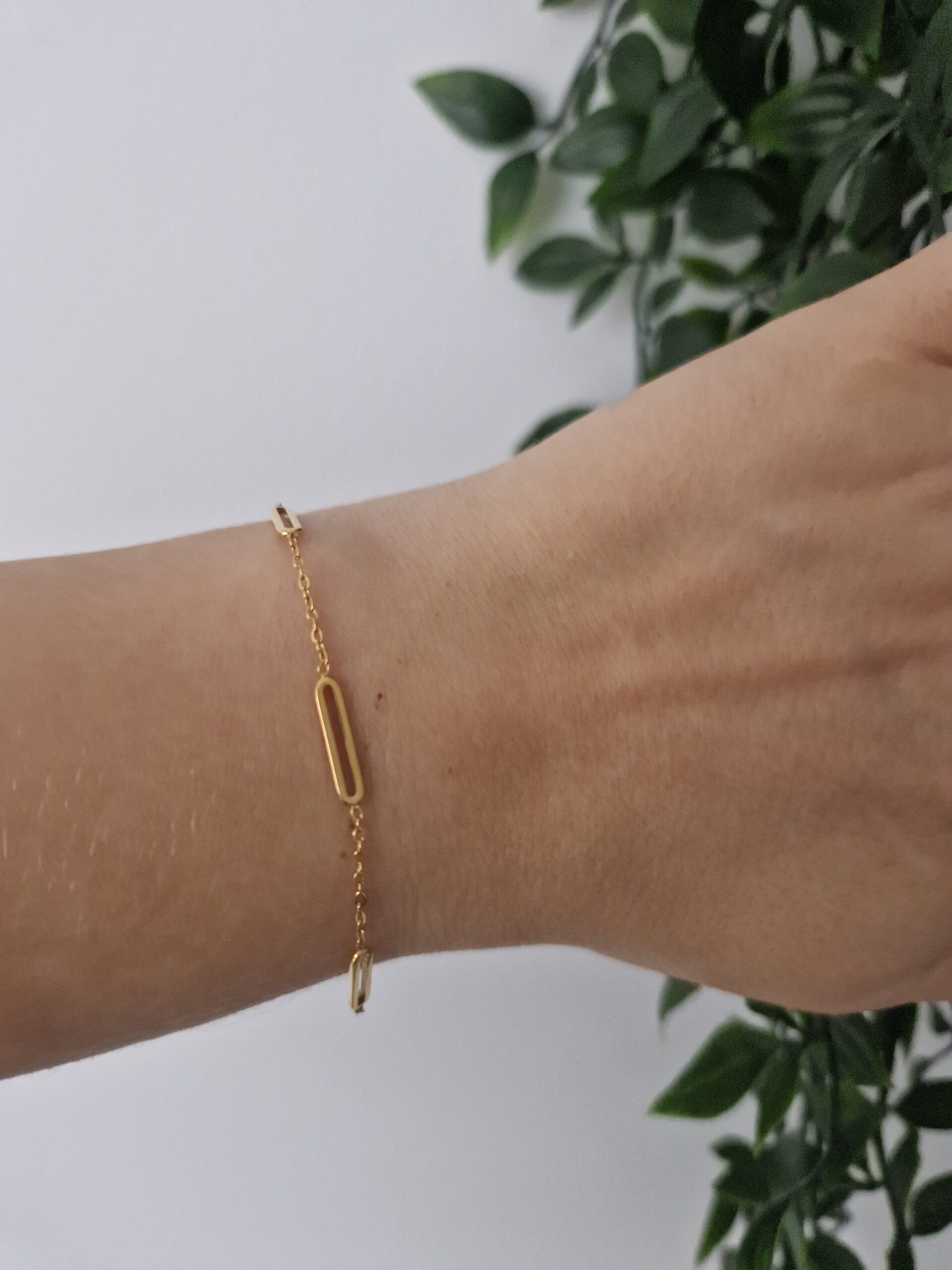 This delicate and elegant bracelet is perfect for everyday wear. Its minimalist design with a subtle rectangular link adds a touch of sophistication to any outfit.