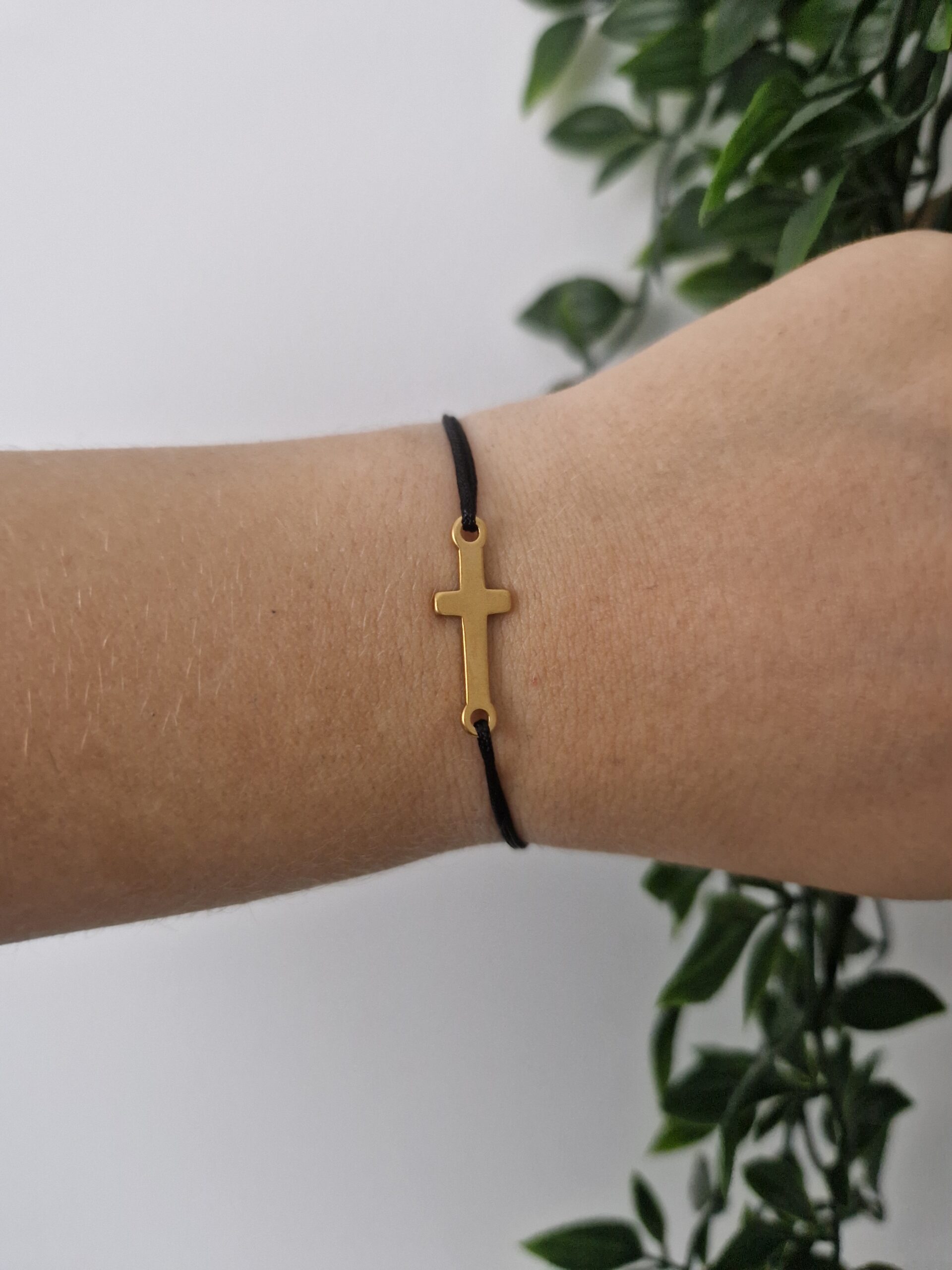 Cross Gold Black Bracelet