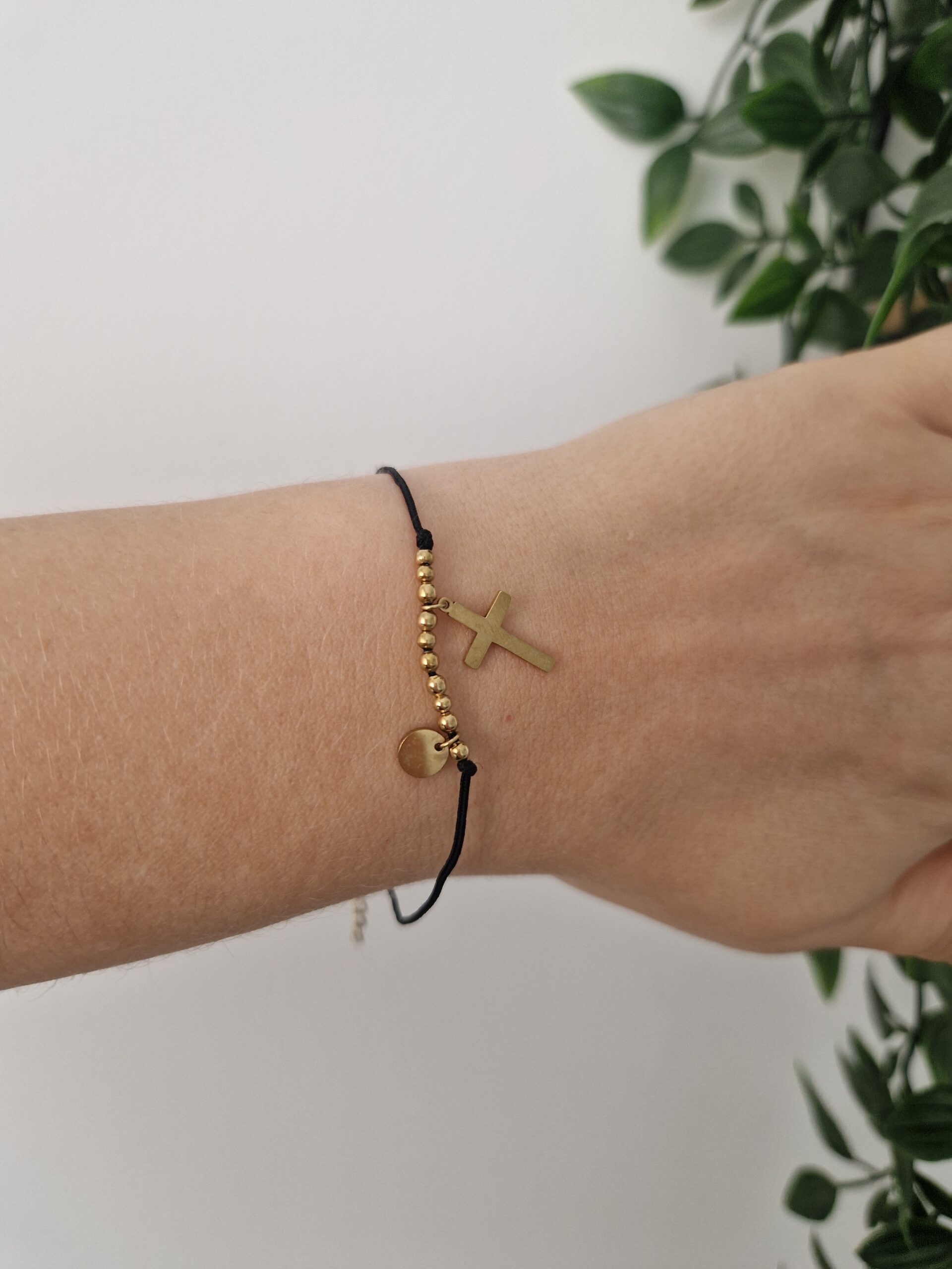 Details: This stylish black string cross bracelet looks great and is a simple, easy way to add some shine to your wardrobe. It’s a beautiful and delicate piece, perfect for everyday wear.