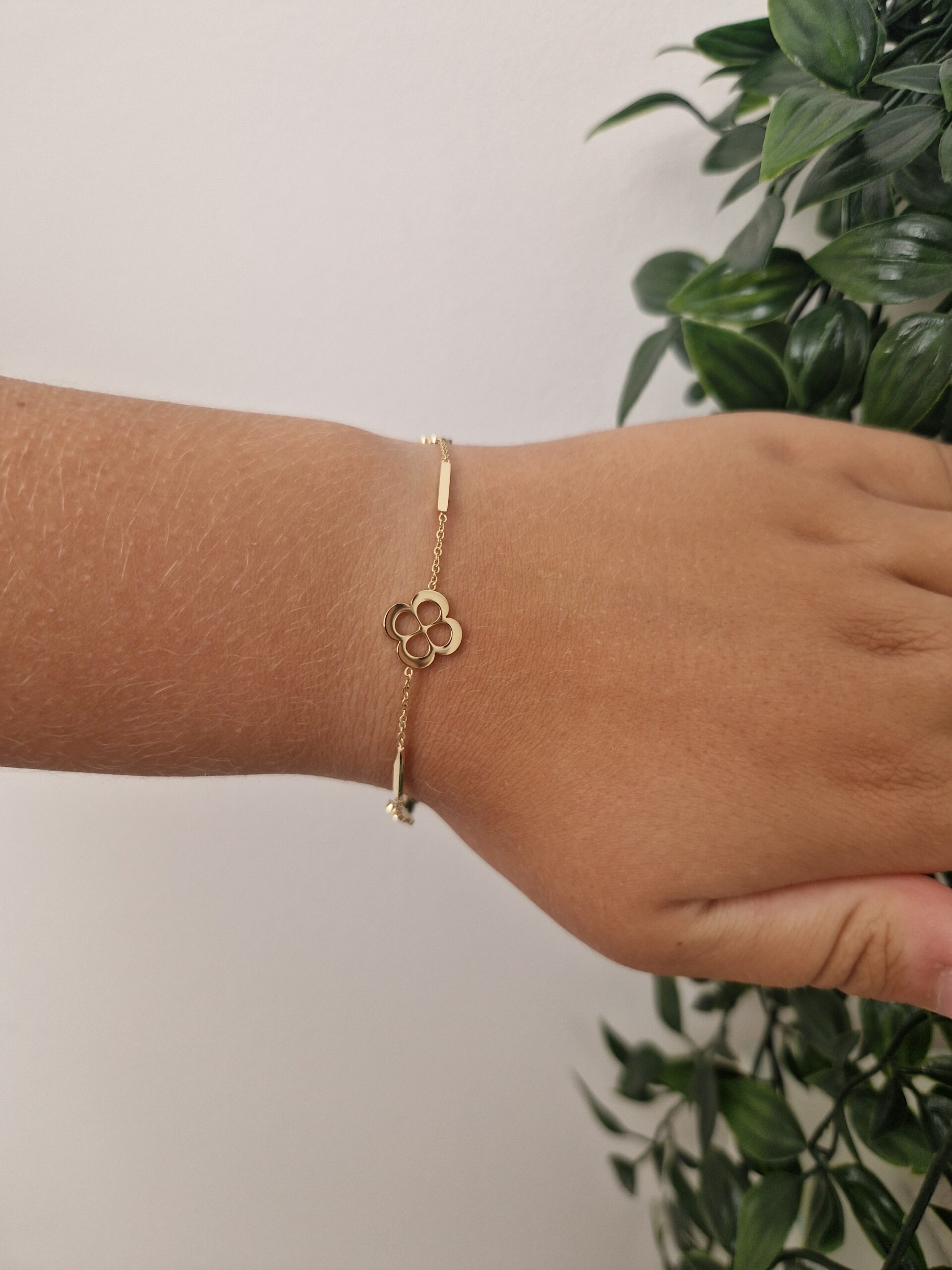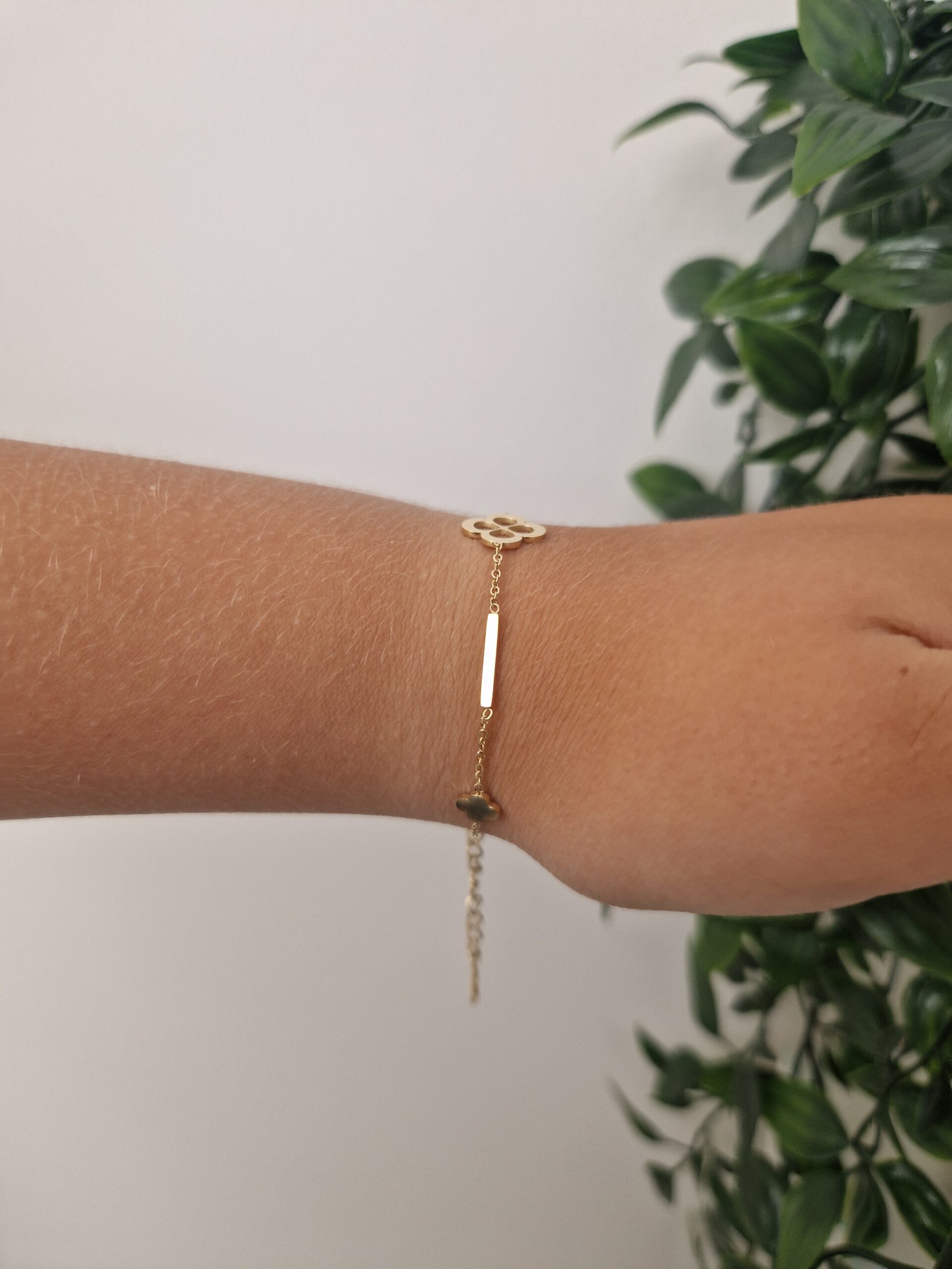 This elegant gold bracelet features a bold chain with a sparkling crystal-studded charm, adding a touch of glamour and sophistication. Perfect for enhancing any outfit, it combines classic design with modern elegance.