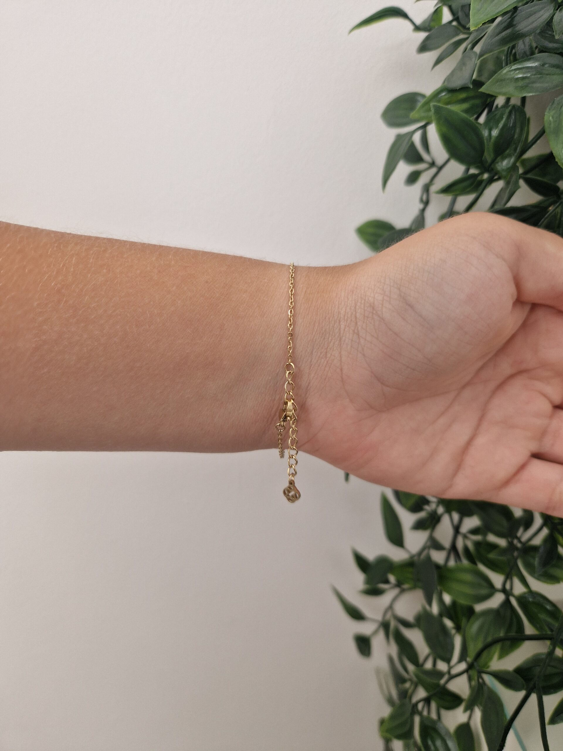 This elegant gold bracelet features a bold chain with a sparkling crystal-studded charm, adding a touch of glamour and sophistication. Perfect for enhancing any outfit, it combines classic design with modern elegance.