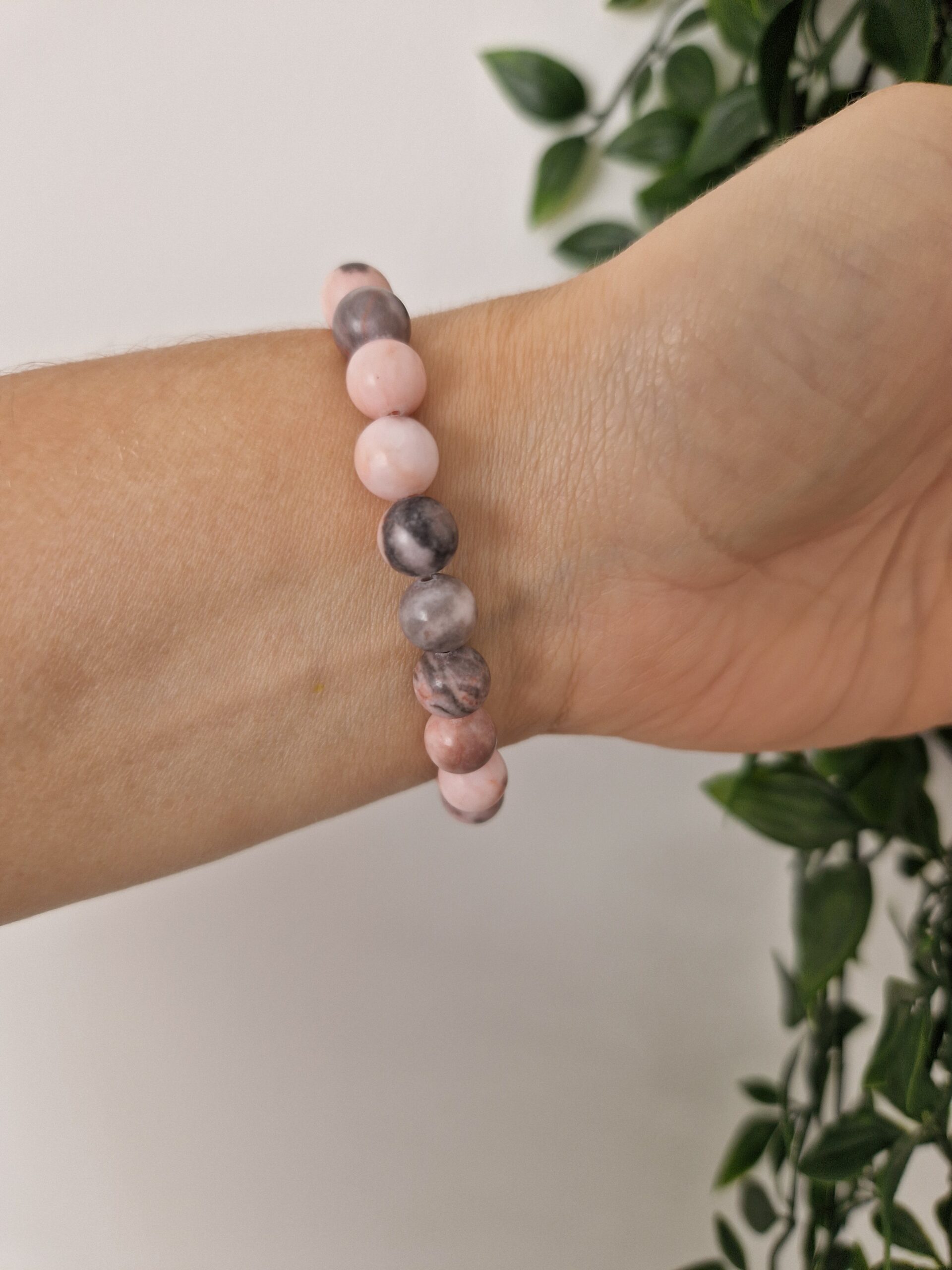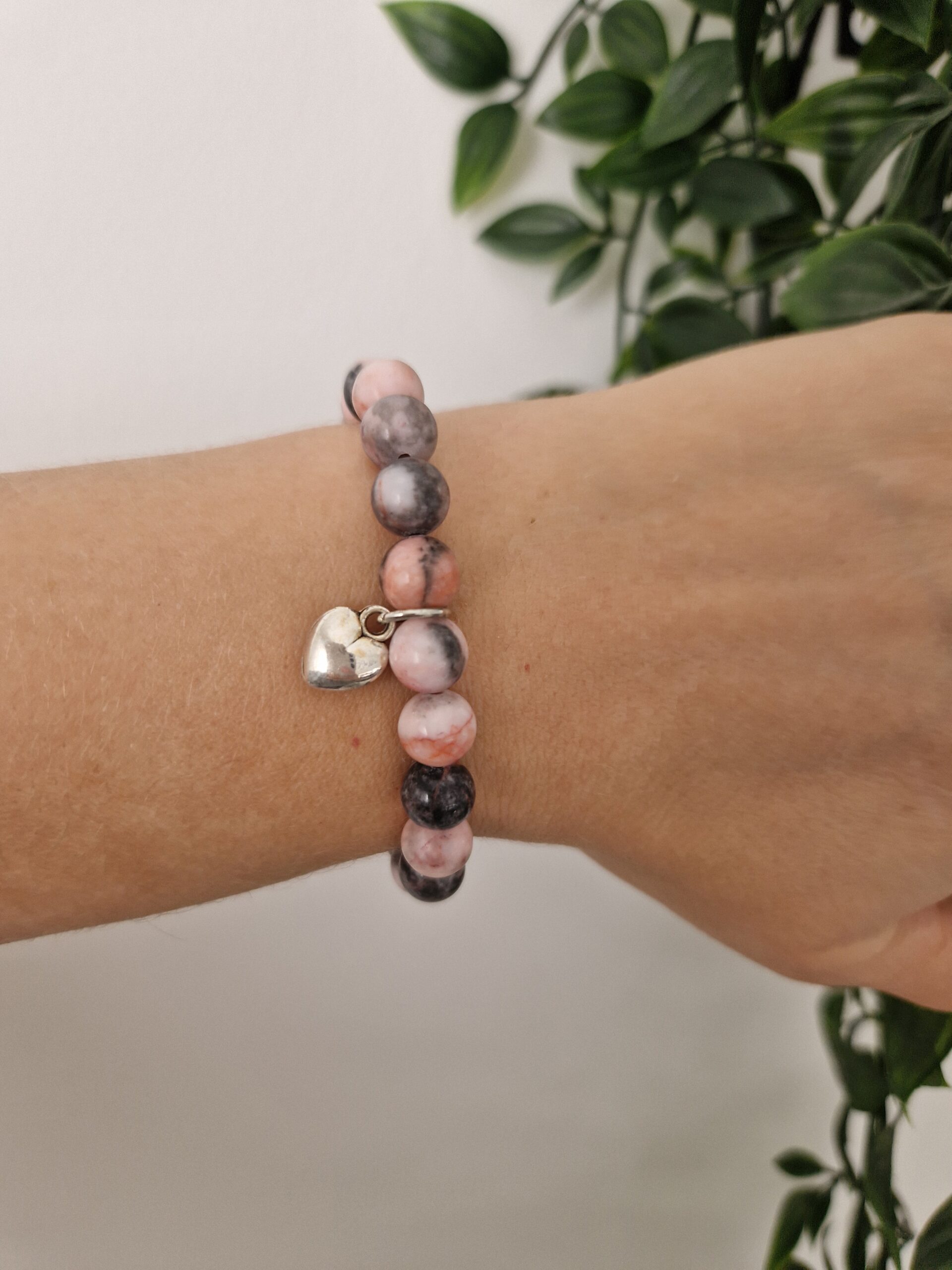 Silver Heart Pink Elastic Stone Bracelet