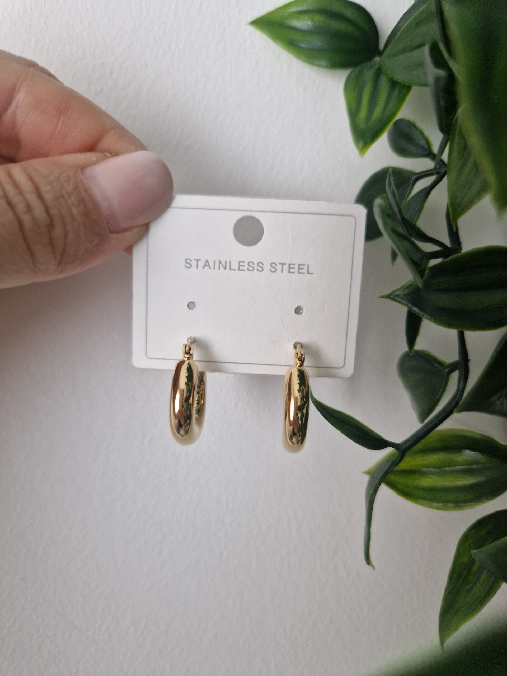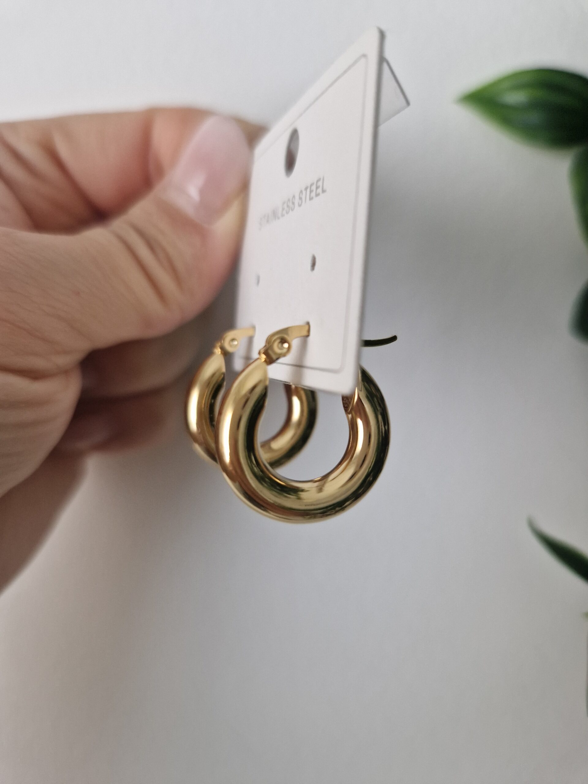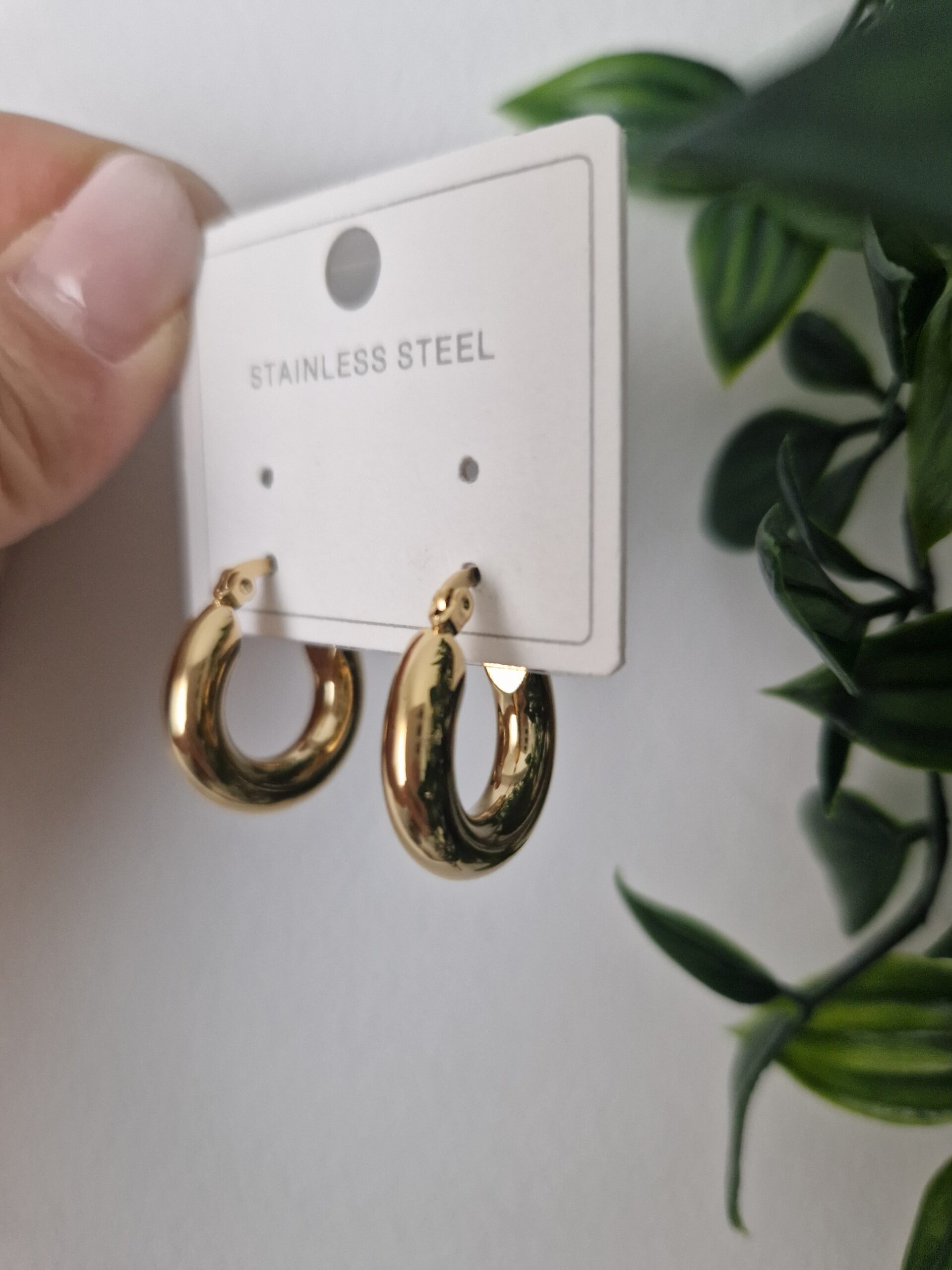 Our chubby hoops just got a bold upgrade! Step up your style routine with bold hoops. These chunky gold hoop earrings feature a simple but chic design, and will quickly become your go-to accessory: wear them to work or with little black dress for a night out.