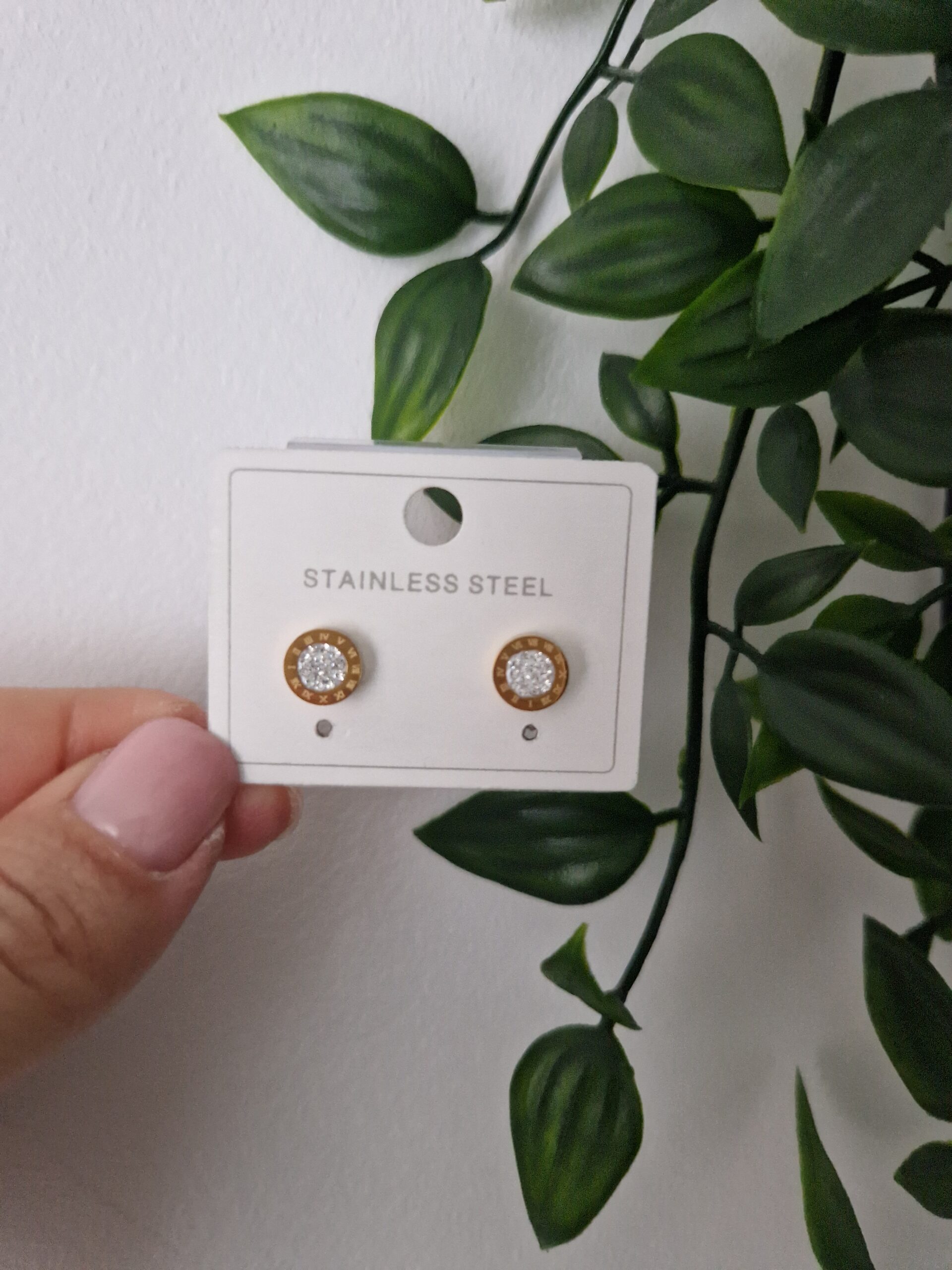 These elegant stainless steel stud earrings feature a gold-toned setting with dazzling crystals, adding a touch of sophistication. Perfect for any occasion, they bring a classic and refined sparkle to your look.