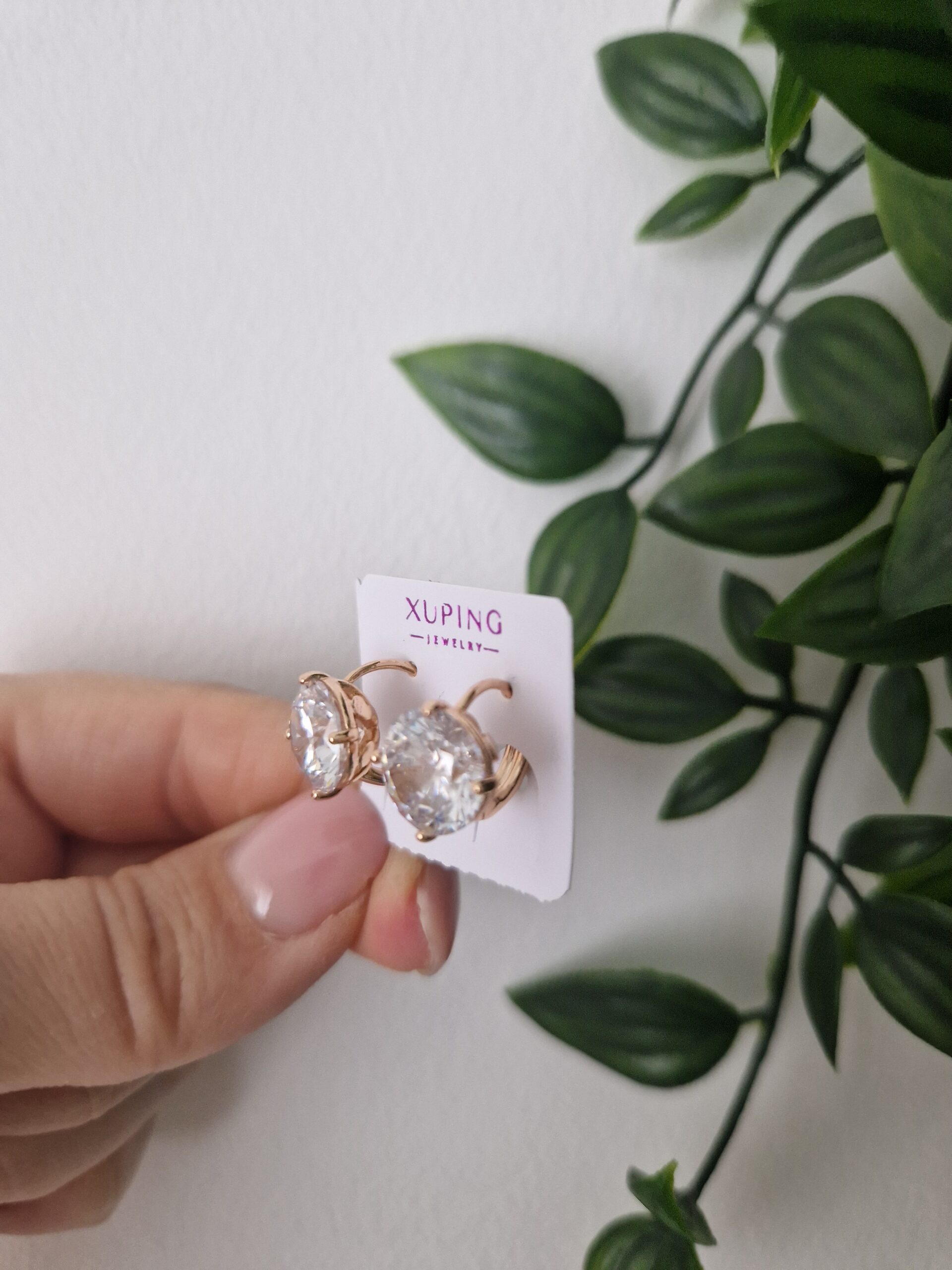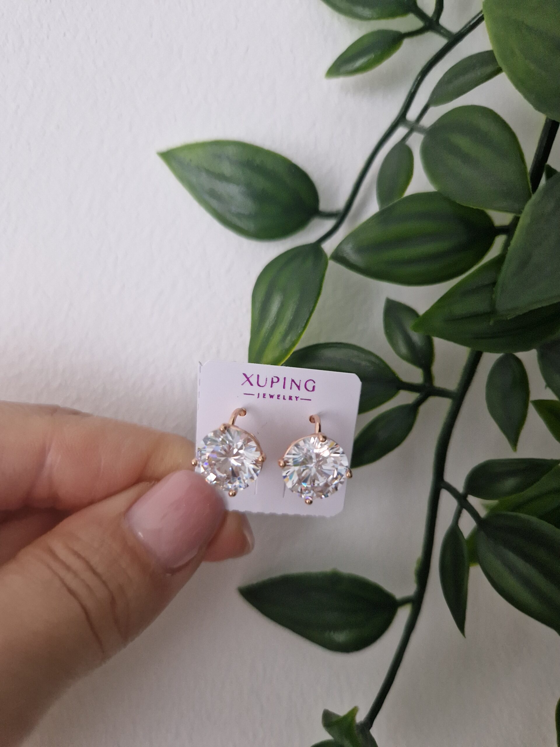 These stunning gold earrings feature a dazzling round crystal, capturing light beautifully for an eye-catching sparkle. Perfect for both everyday wear and special occasions, these earrings add a touch of glamour to any ensemble.