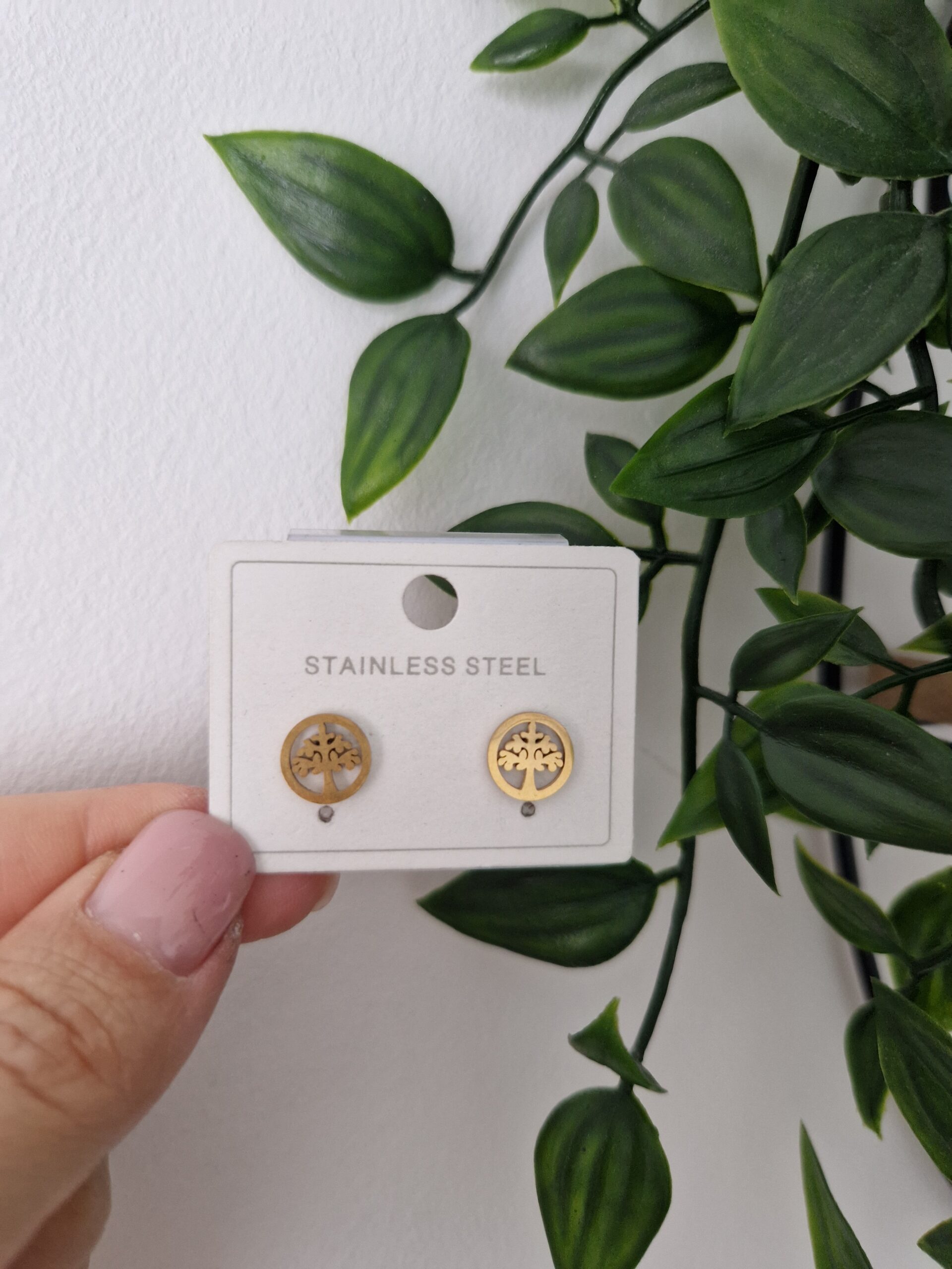 EARRINGS – GOLD TREE OF LIFE STUDS
