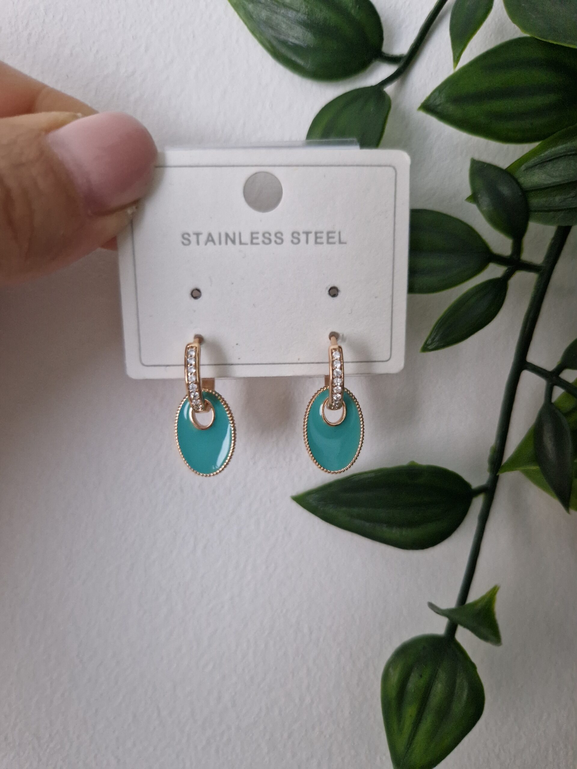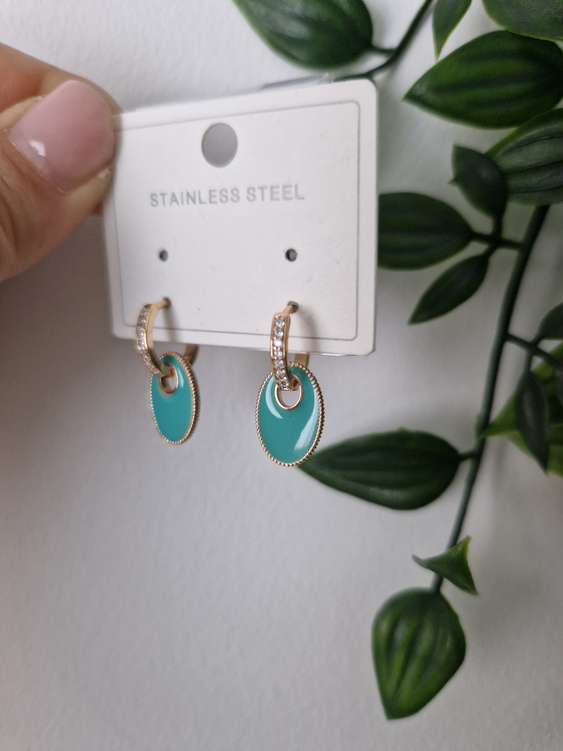 These elegant gold and turquoise oval earrings, crafted from stainless steel, feature a vibrant turquoise enamel accent complemented by sparkling details. Their sophisticated and colourful design makes them a perfect accessory for adding a touch of elegance and charm to any outfit.