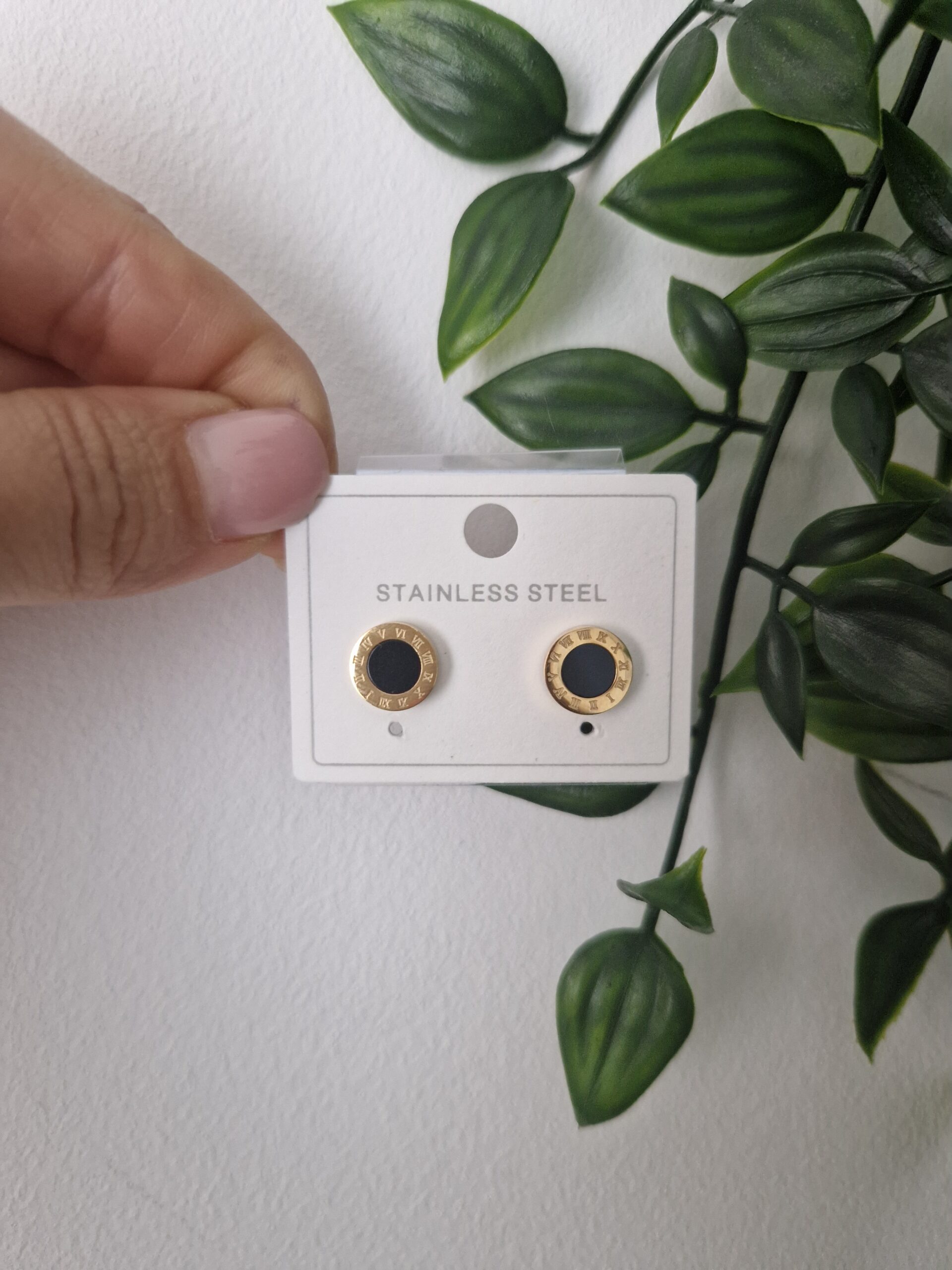 These classic gold stainless steel earrings feature striking black onyx studs, framed by a sleek gold border. Ideal for everyday wear, they add a touch of timeless elegance and sophistication to any outfit.