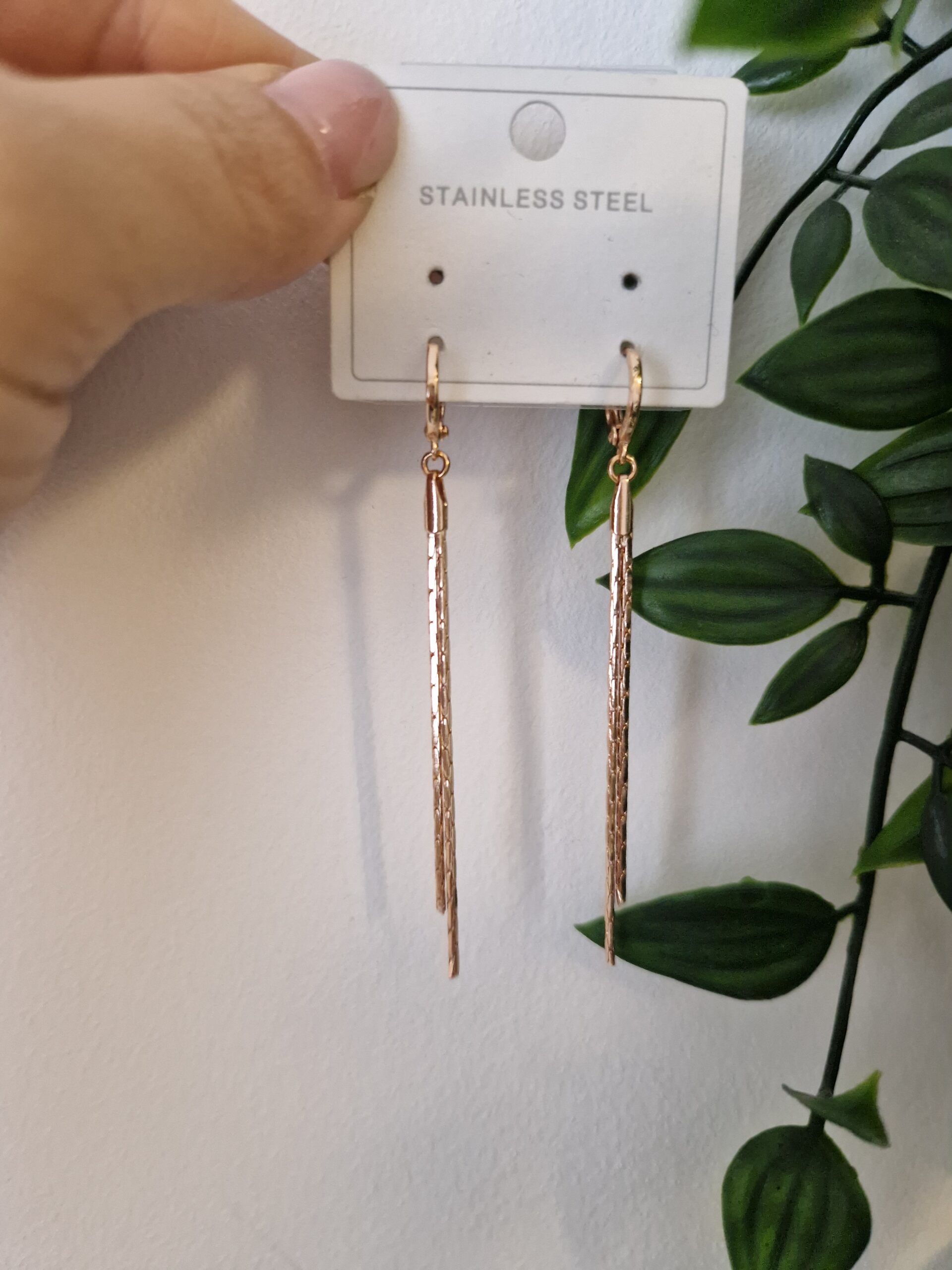 These elegant rose gold drop earrings feature sleek, elongated bars that add a touch of modern sophistication. Their minimalist and chic design makes them a versatile accessory, perfect for elevating any outfit from casual to formal.