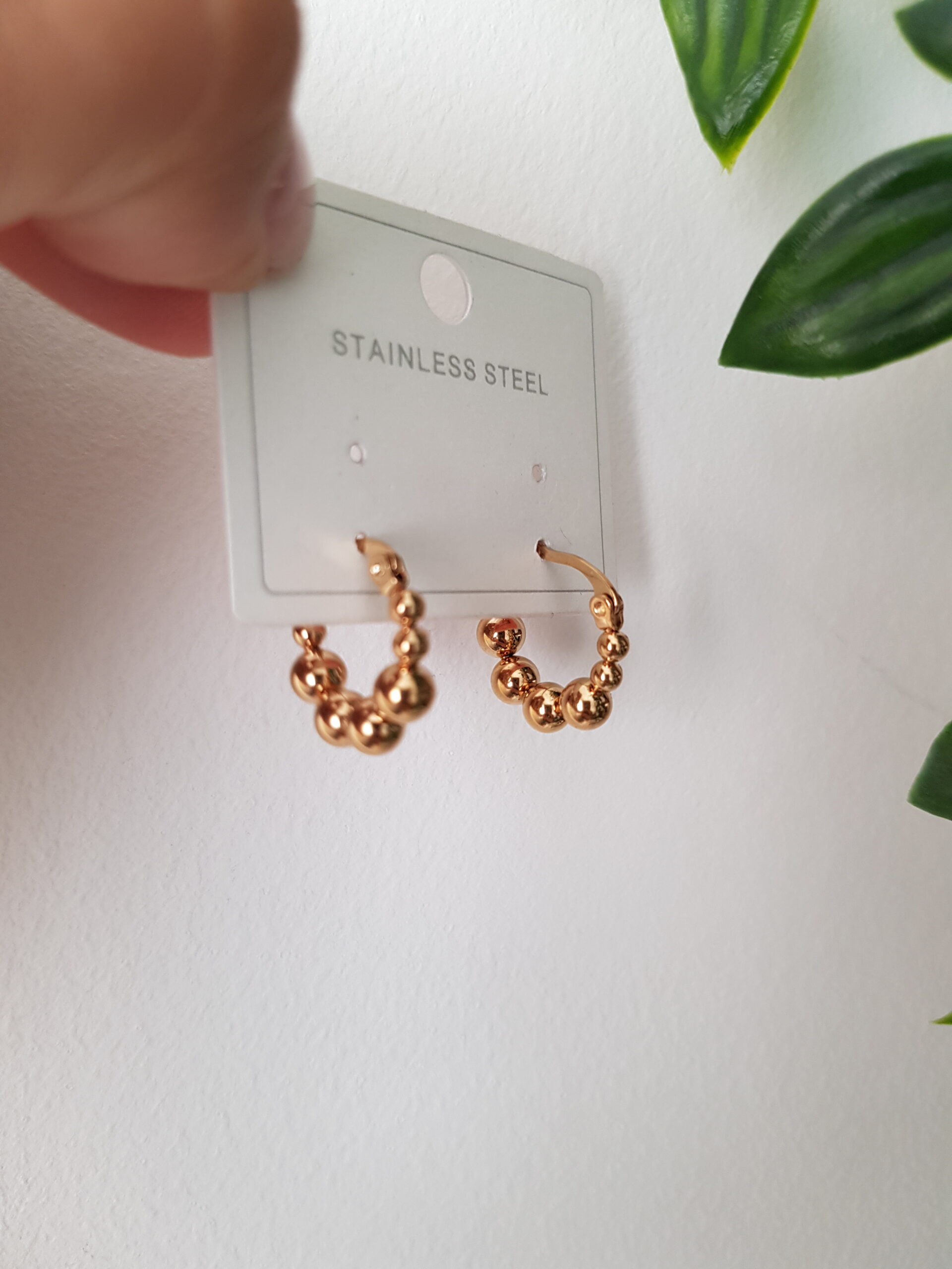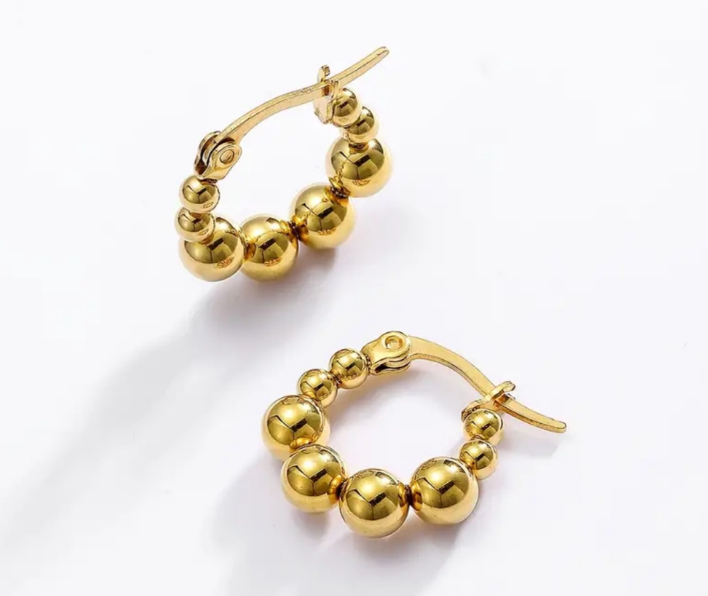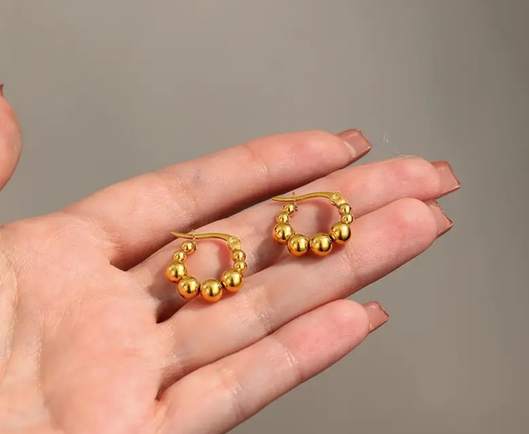 These elegant gold earrings. Crafted from stainless steel, their sophisticated design and shimmering accents make them a perfect choice for adding a touch of glamour to any outfit.