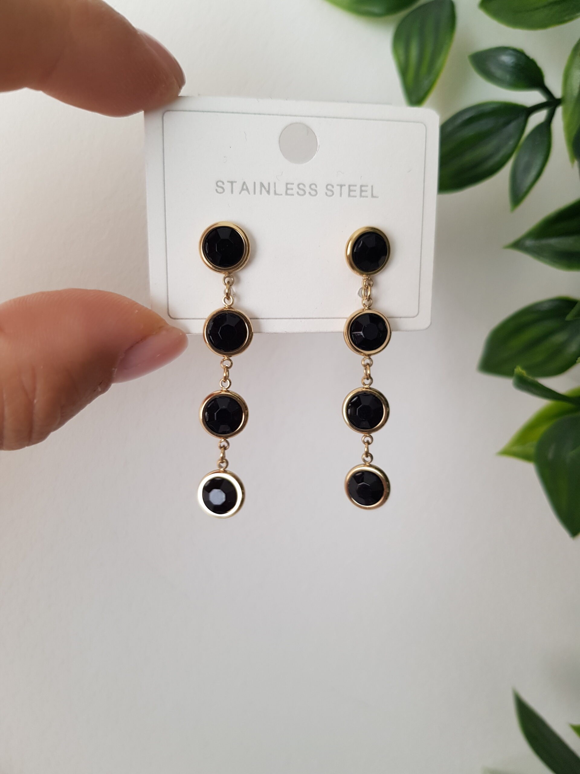 Long Gold Black Stud Earrings