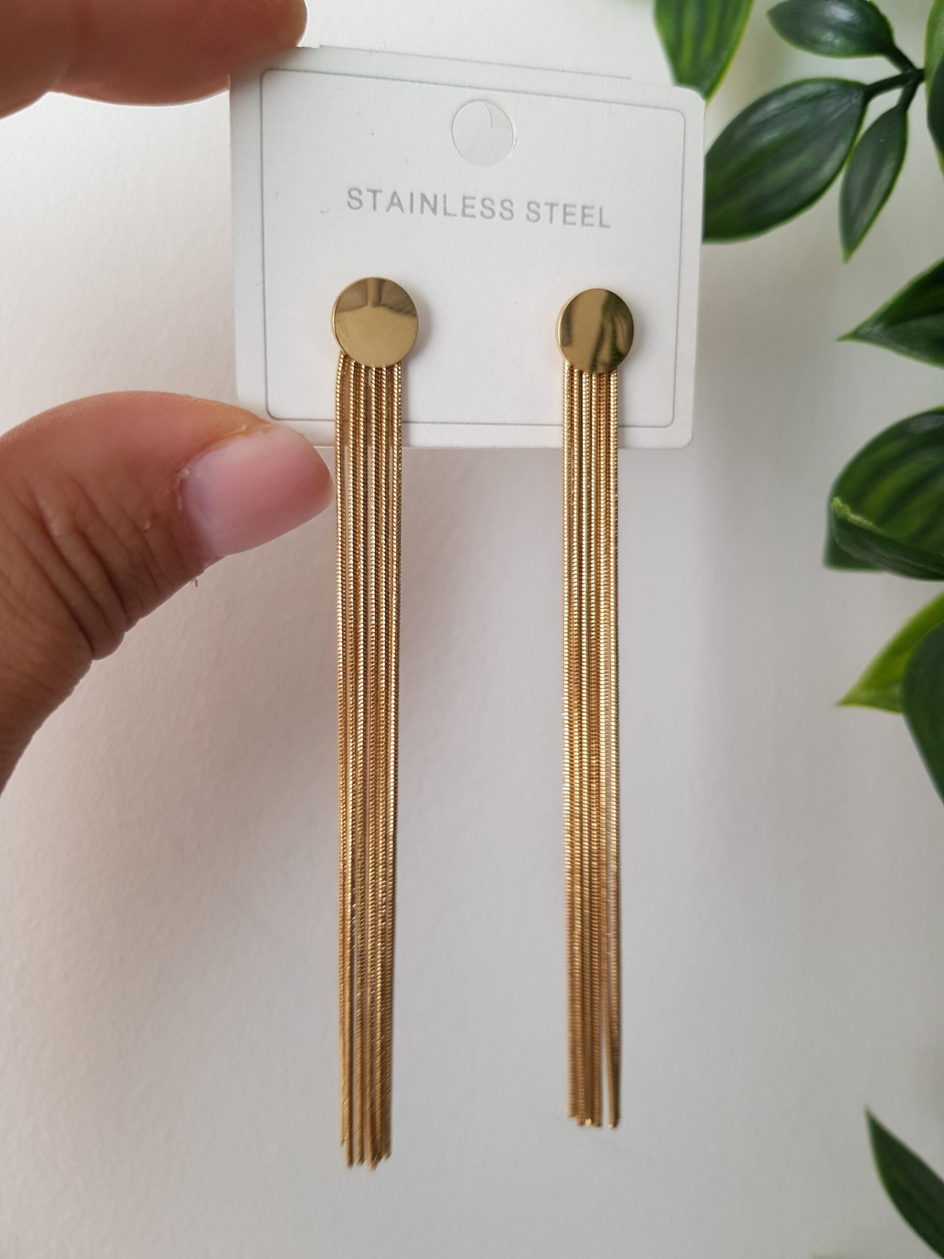 These elegant gold earrings. Crafted from stainless steel, their sophisticated design and shimmering accents make them a perfect choice for adding a touch of glamour to any outfit.