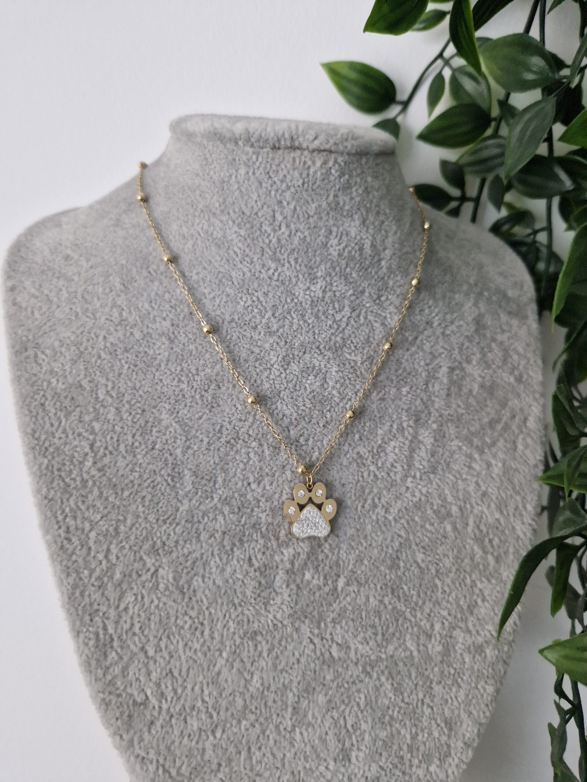 Zirconia Paw Print Gold Necklace