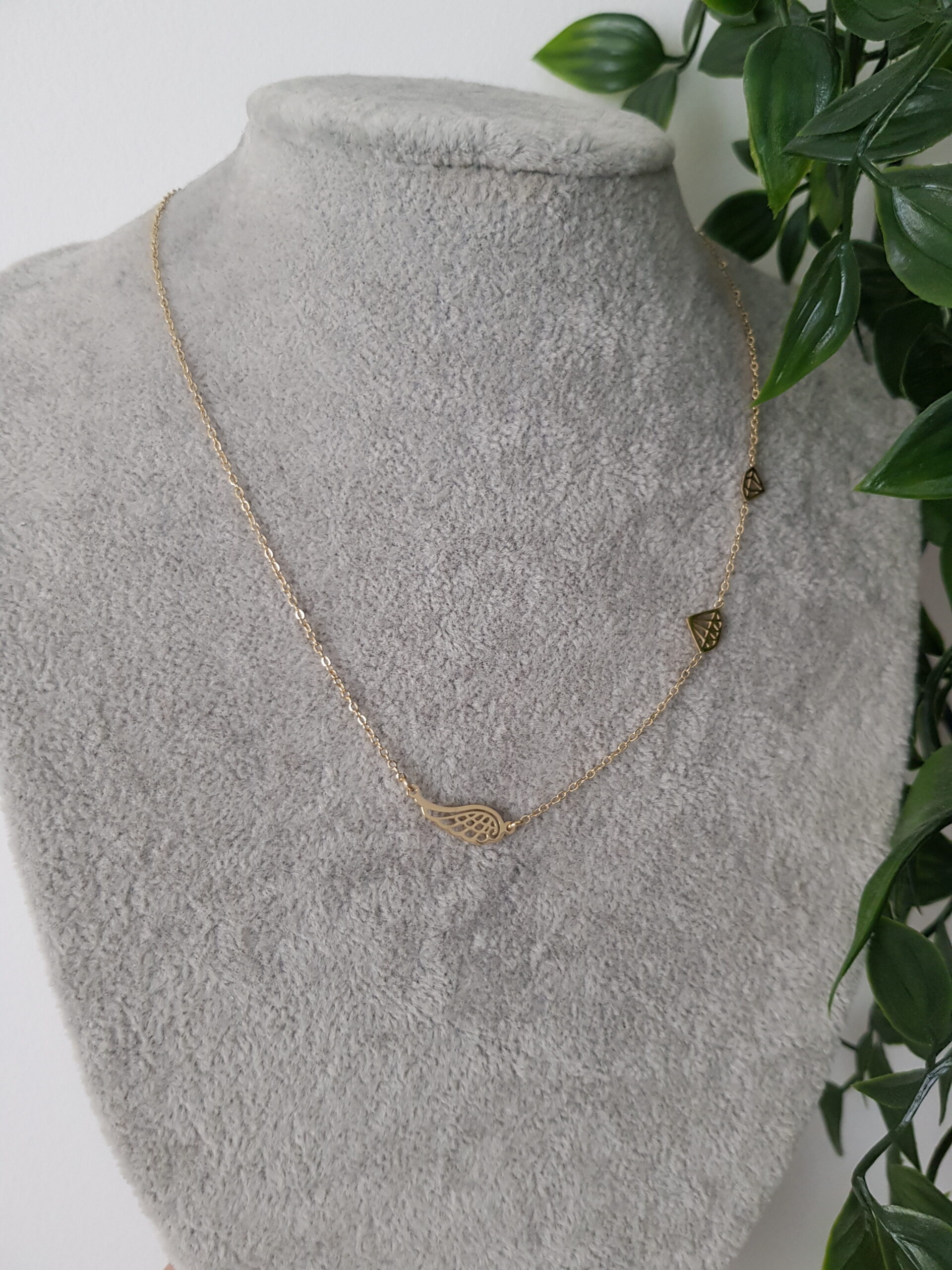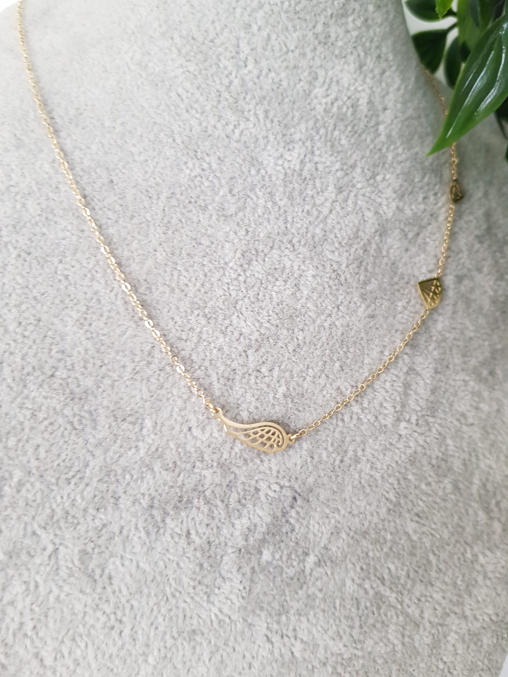 Wing and Diamond Gold Necklace