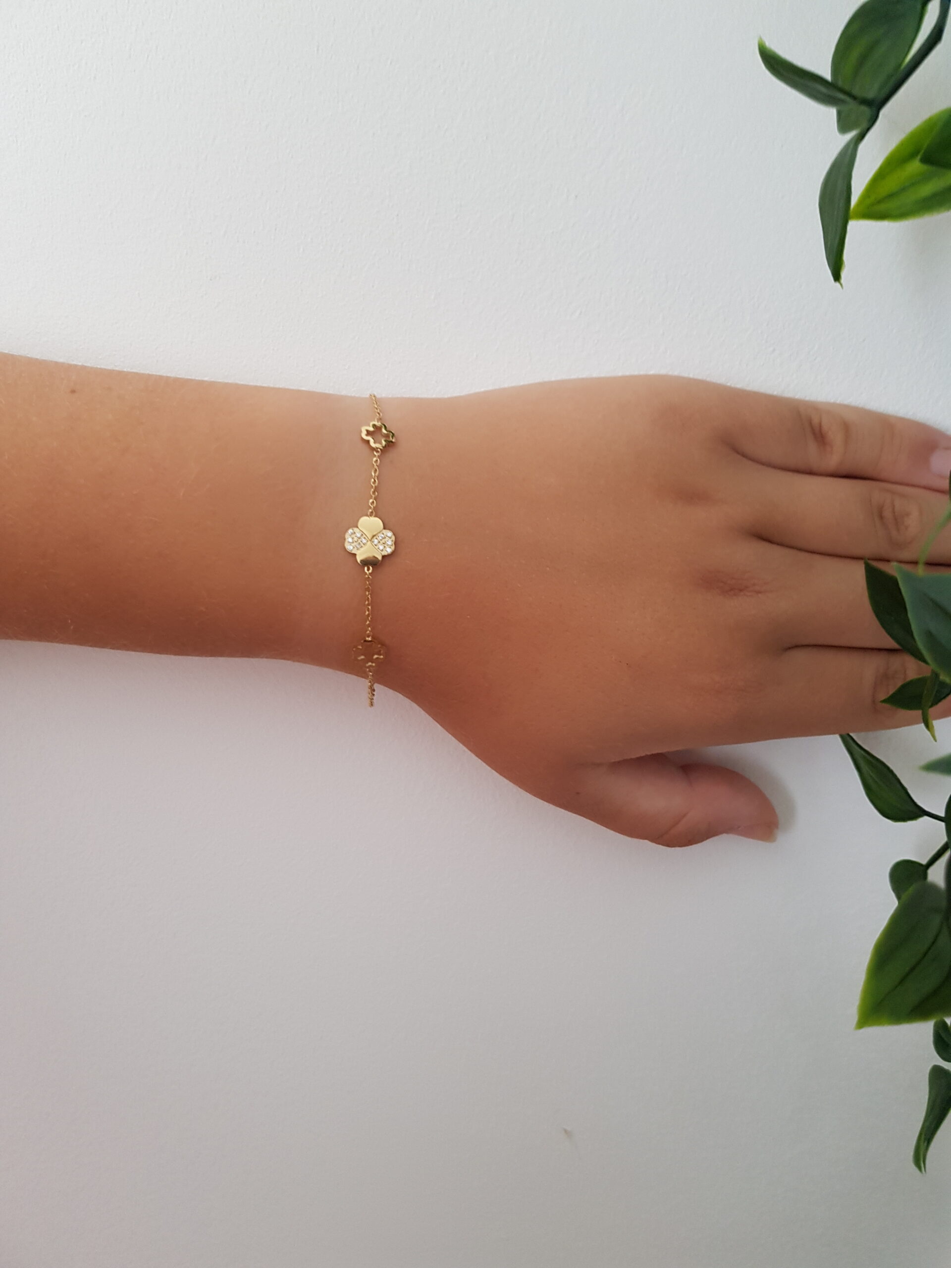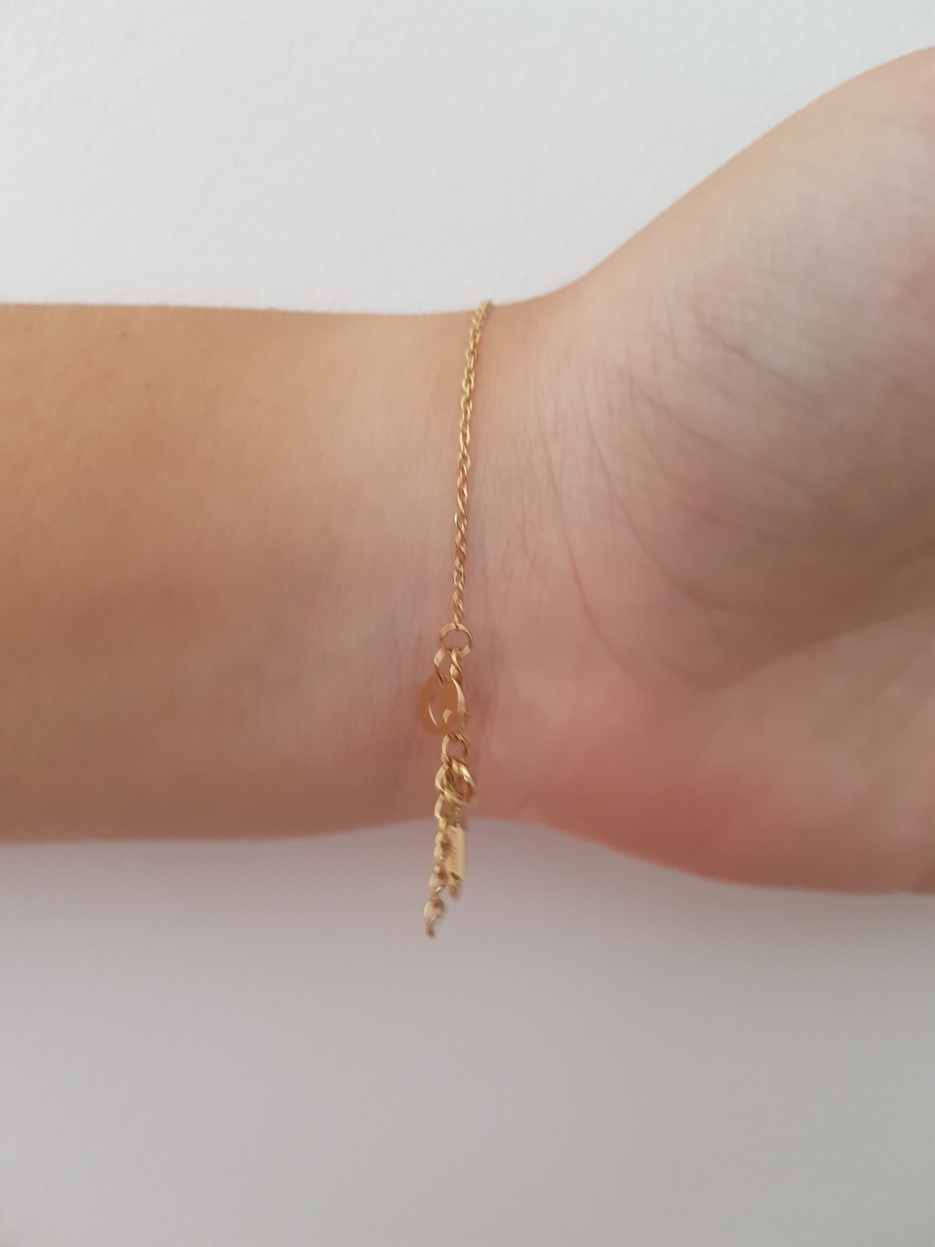 This elegant gold bracelet features a bold chain with a sparkling crystal-studded charm, adding a touch of glamour and sophistication. Perfect for enhancing any outfit, it combines classic design with modern elegance.