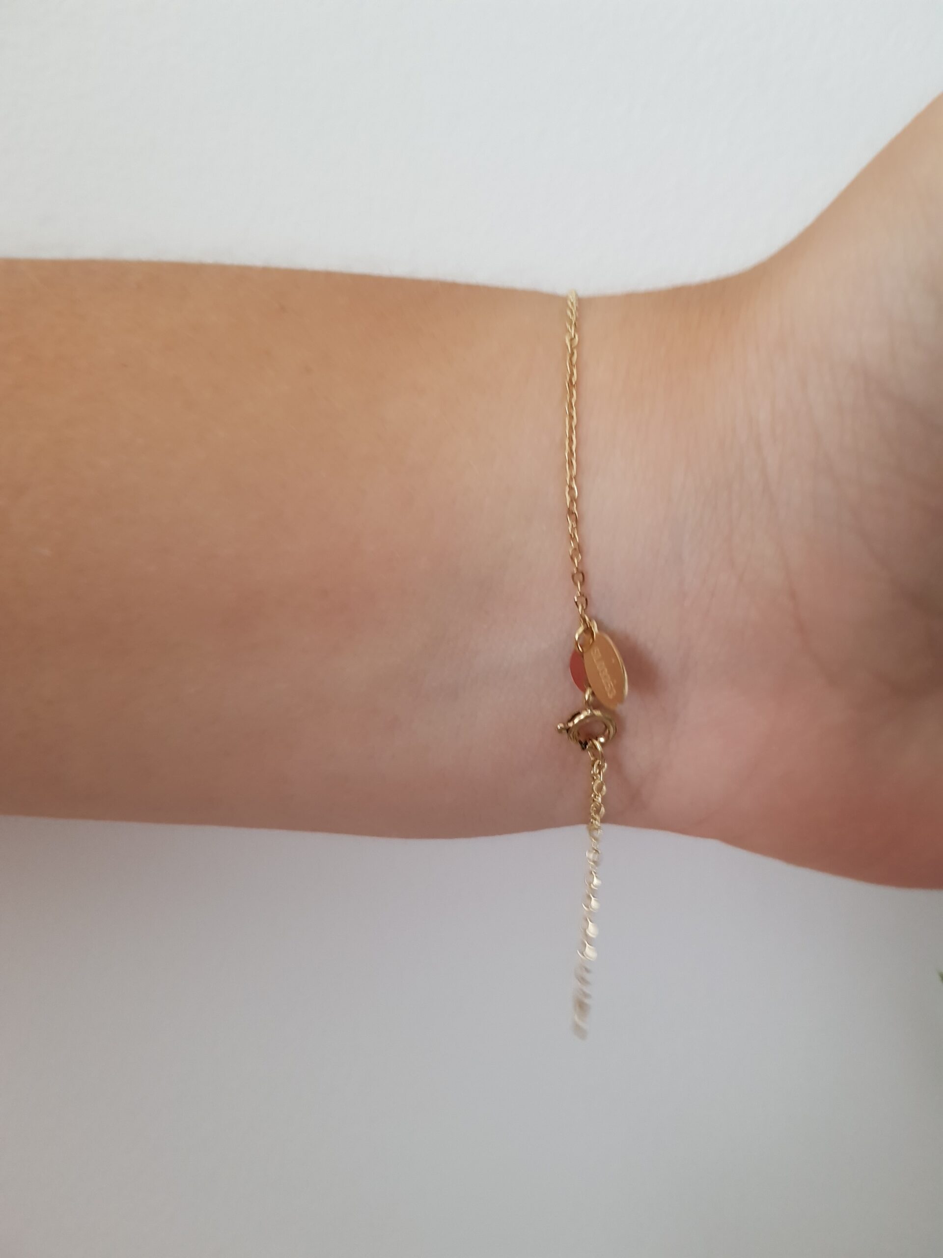 This elegant gold bracelet features a bold chain with a sparkling crystal-studded charm, adding a touch of glamour and sophistication. Perfect for enhancing any outfit, it combines classic design with modern elegance.
